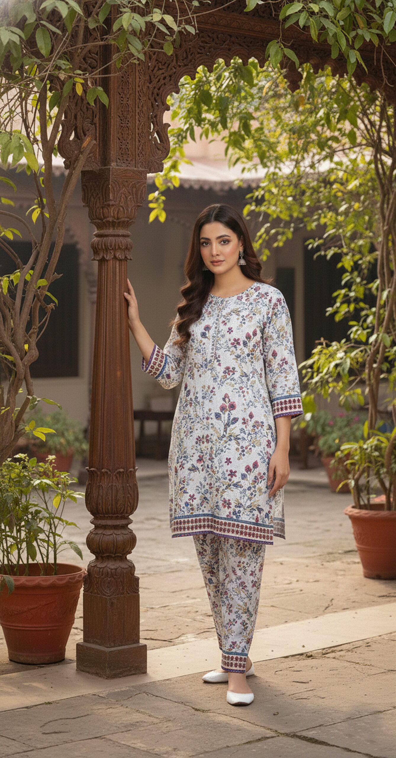Boski Linen Dress – 2 PC Stitched Shirt & Trouser – White Colour
