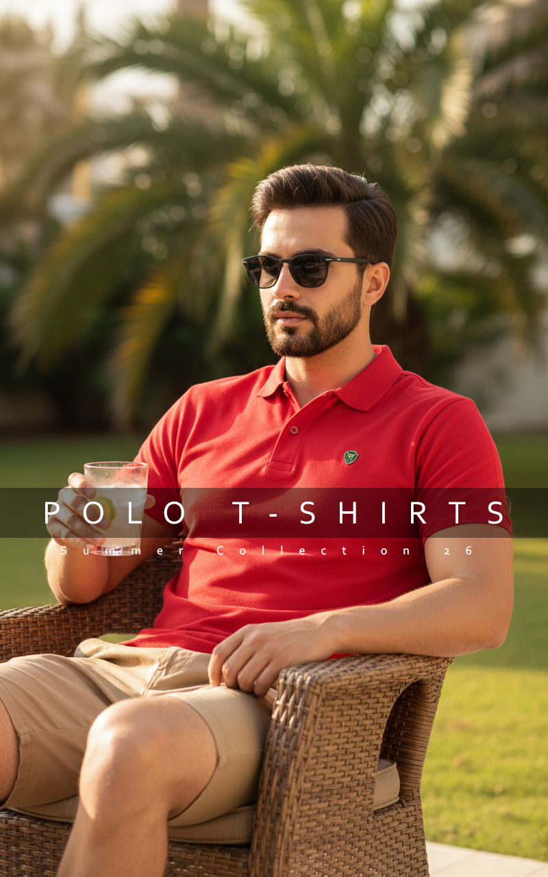 Embossed Polo T-Shirts – Summer Collection Elevate your casual wardrobe with our Embossed Polo T-Shirts, crafted from soft and breathable jersey fabric for all-day comfort. Perfect for the warmer months, these polos combine effortless style with a lightweight feel.Available in five versatile colours – Light Grey, Navy Blue, Black, Red, and Mustard – each shirt features subtle embossed detailing that adds a modern, premium touch. Whether you’re dressing up for a casual day out or keeping it cool in the summer heat, these polos are your go-to choice for comfort and style.