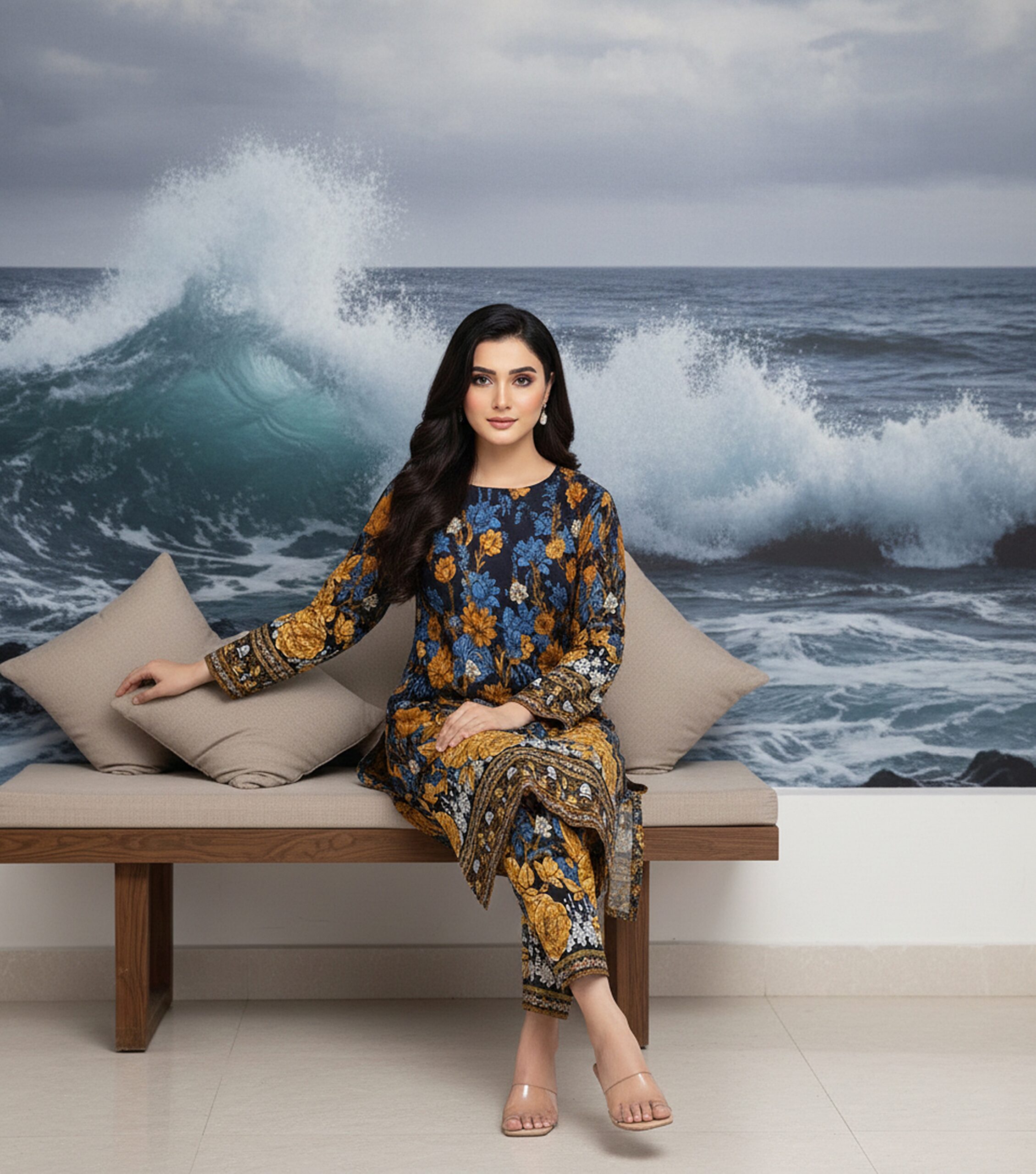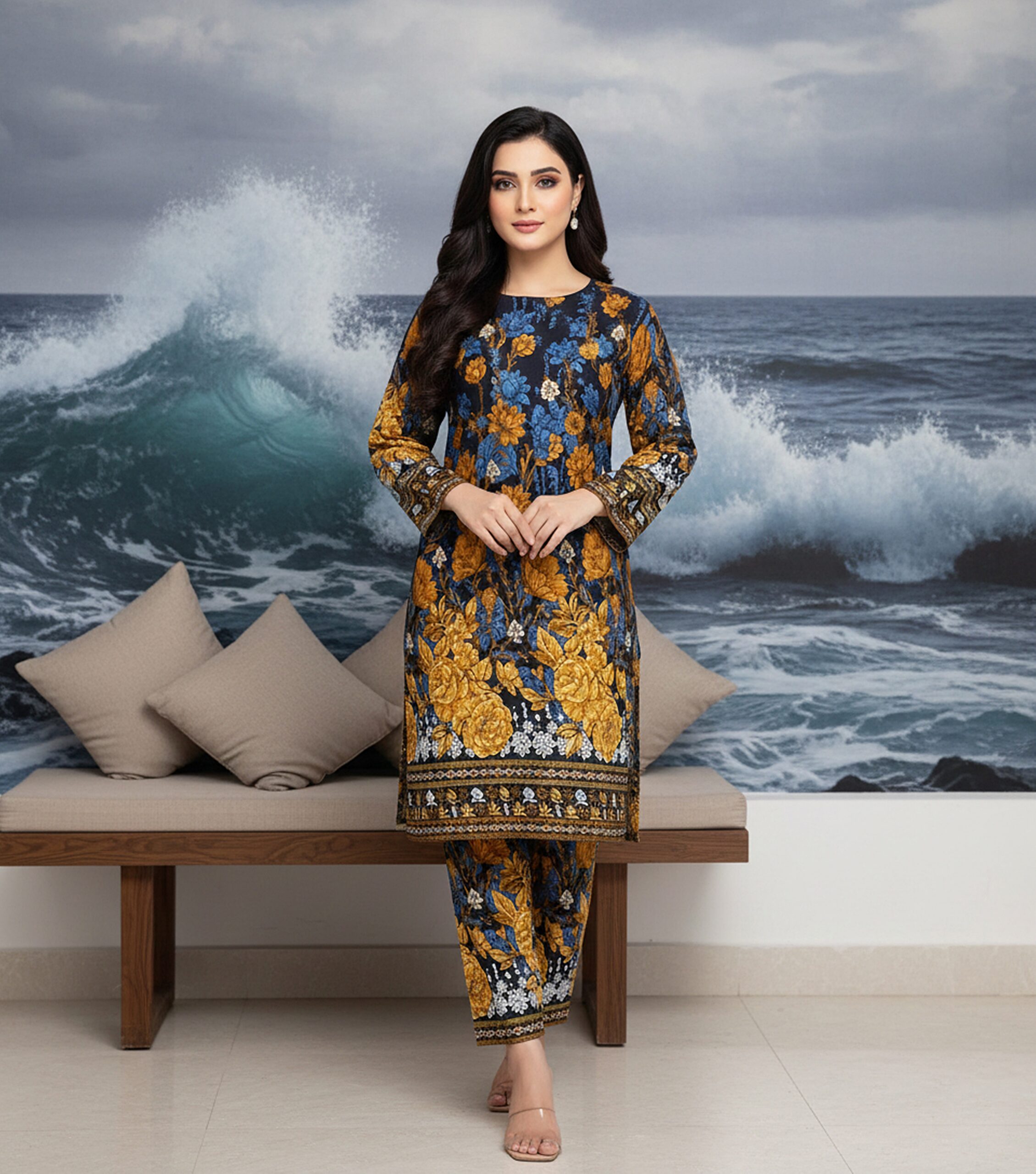 This Lawn 2-piece printed suit features a stunning floral print on both the shirt and trousers, offering a fresh and vibrant look. The shirt is adorned with intricate floral patterns that bring a touch of nature’s beauty, while the trousers complement the design with a sleek and tailored fit. Made from soft, breathable lawn fabric, this set provides all-day comfort without compromising on style. The floral print adds a playful yet elegant touch, making this suit perfect for both casual outings and semi-formal occasions. Embrace effortless elegance and charm with this timeless floral printed ensemble.