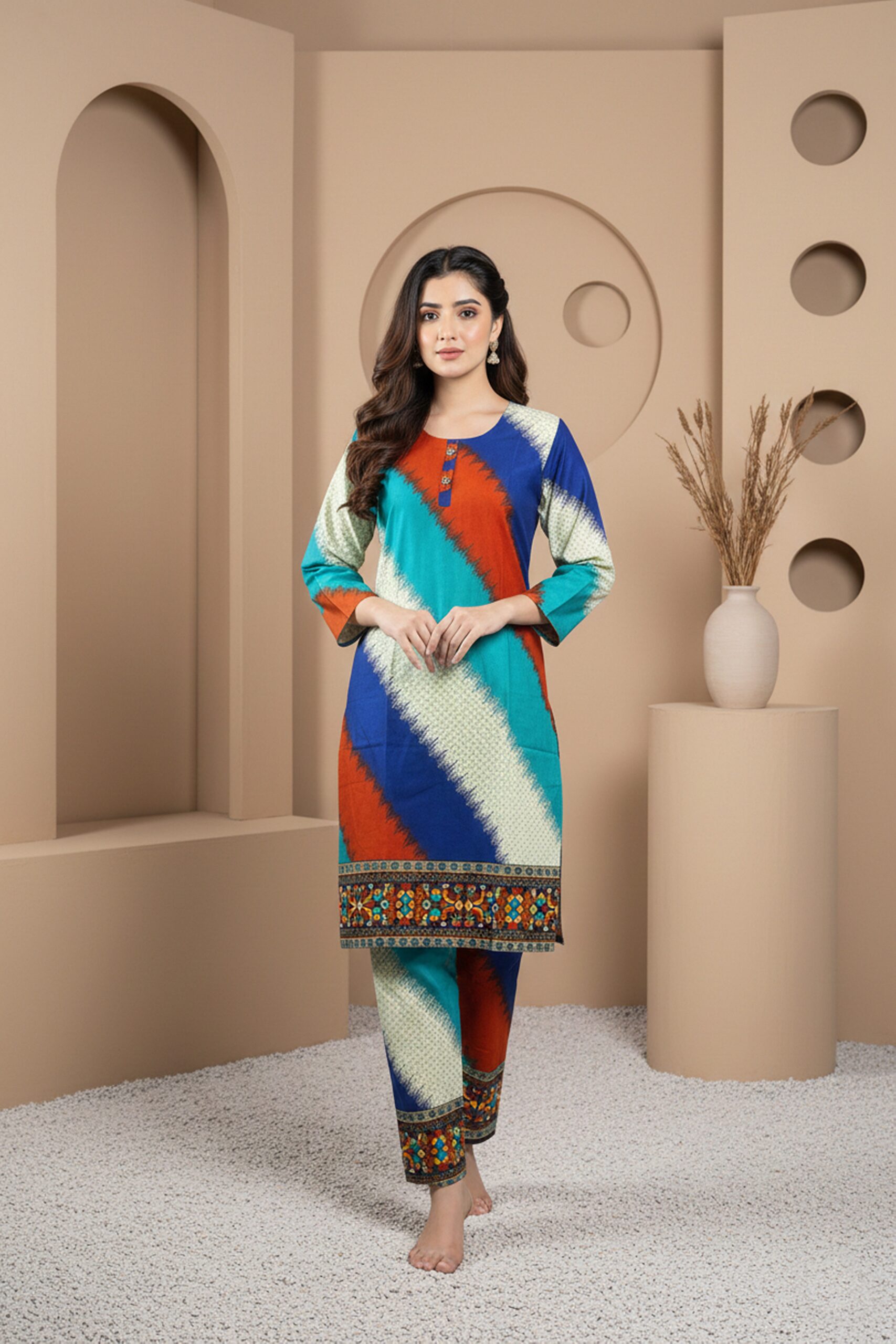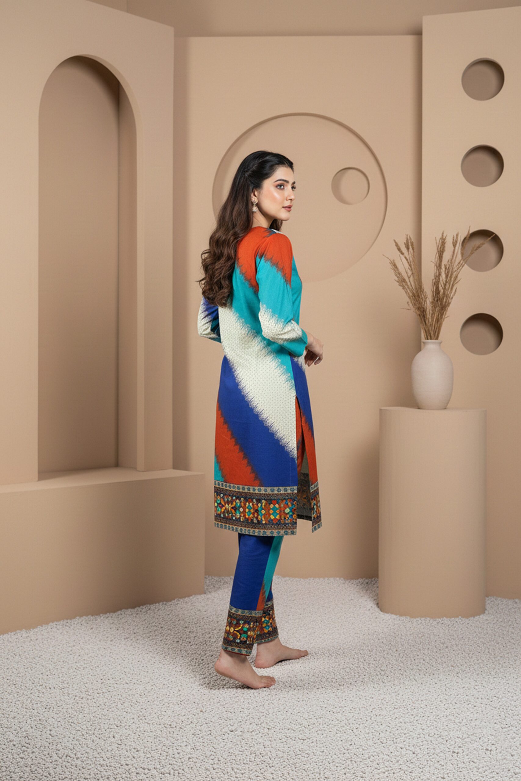 Lawn Dress – Printed 2 PC Stitched Shirt & Trouser – Multicolour