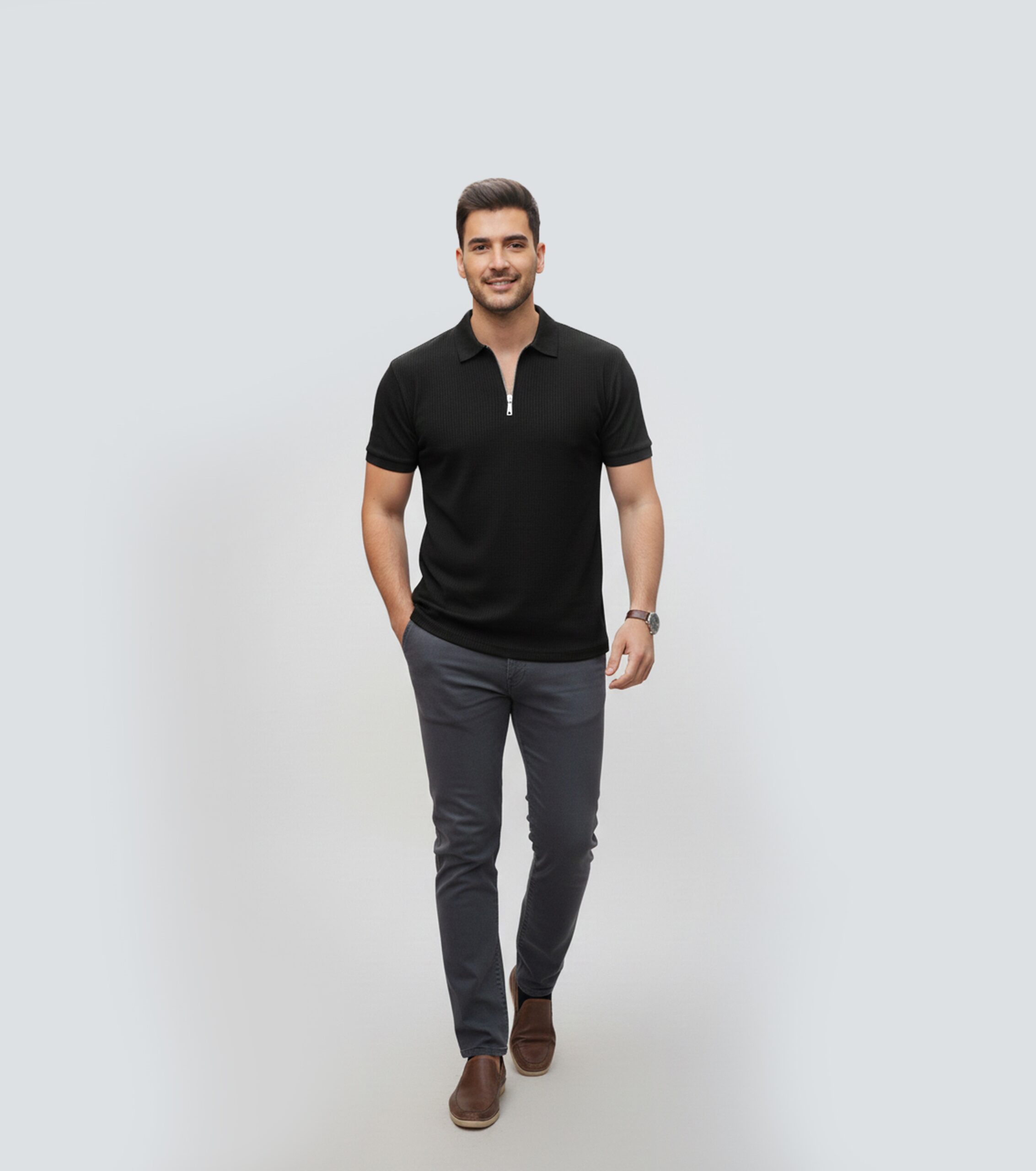 Quarter Zipper Polo T-Shirt – Available in 5 Colours Upgrade your casual style with our Quarter Zipper Polo T-Shirt, designed for a modern and versatile look. Crafted from soft, breathable fabric, it features a sleek quarter-zip front for added style and comfort. Available in 5 vibrant colours, it’s perfect for everyday wear, weekend outings, or a smart-casual statement all year round.