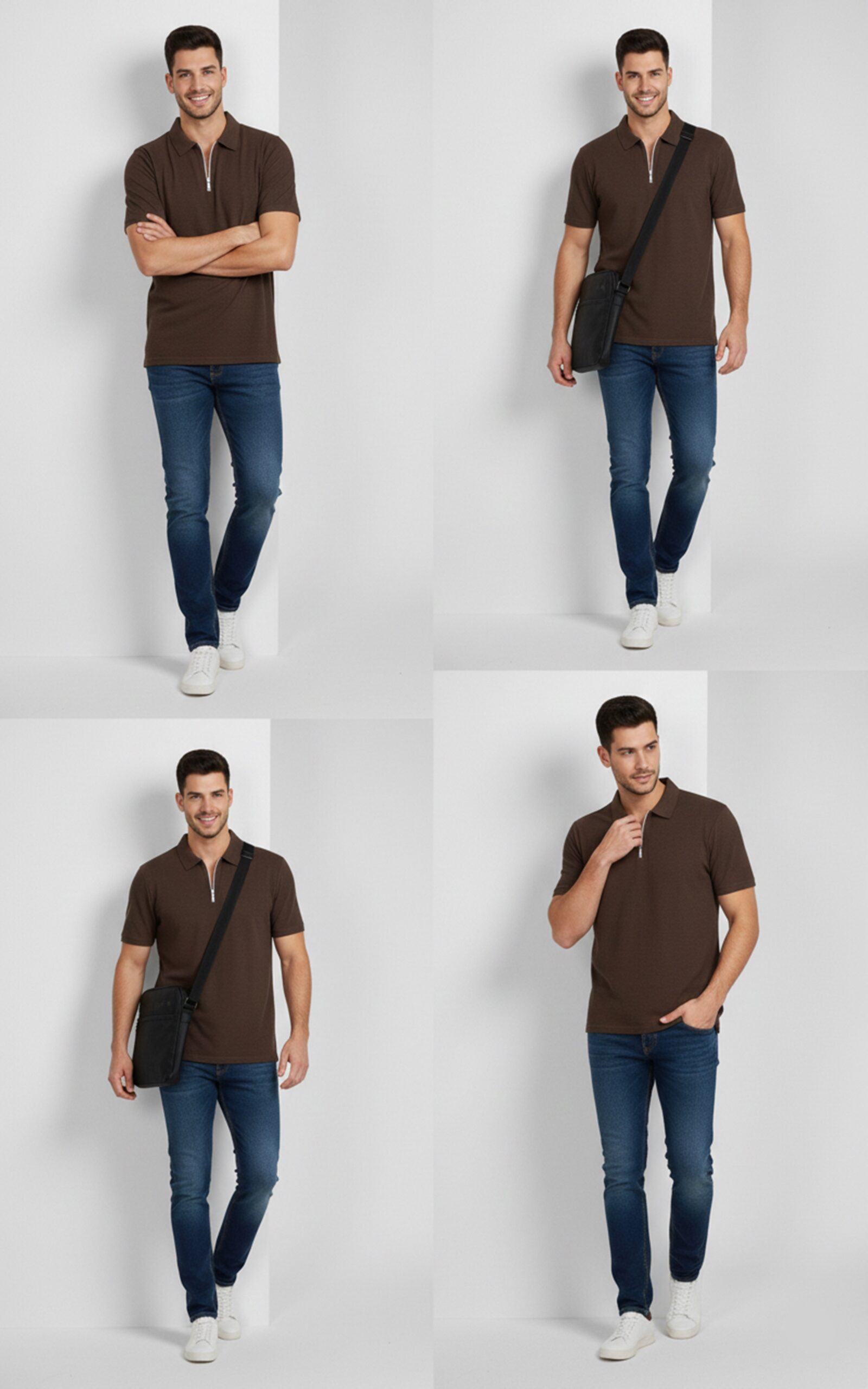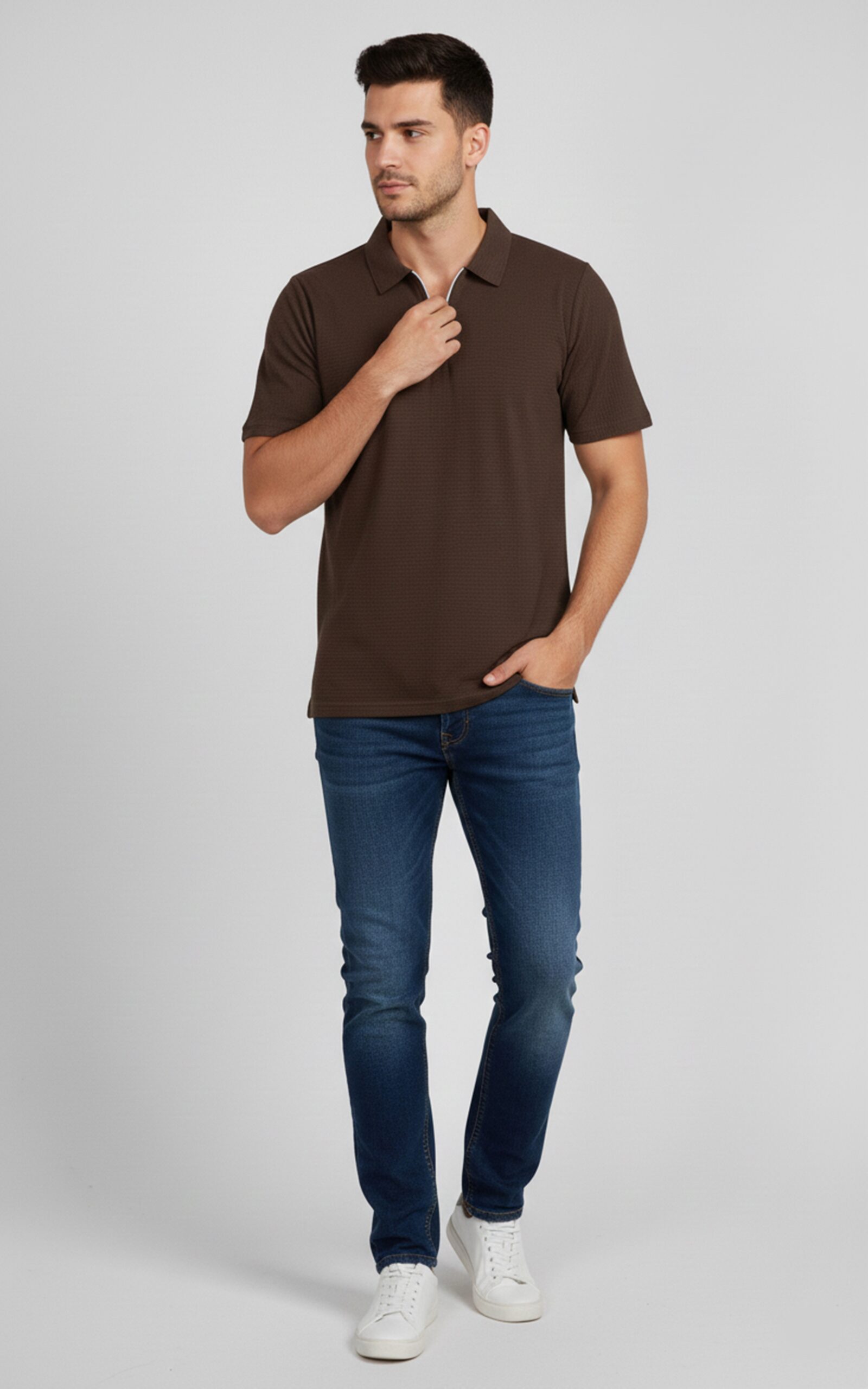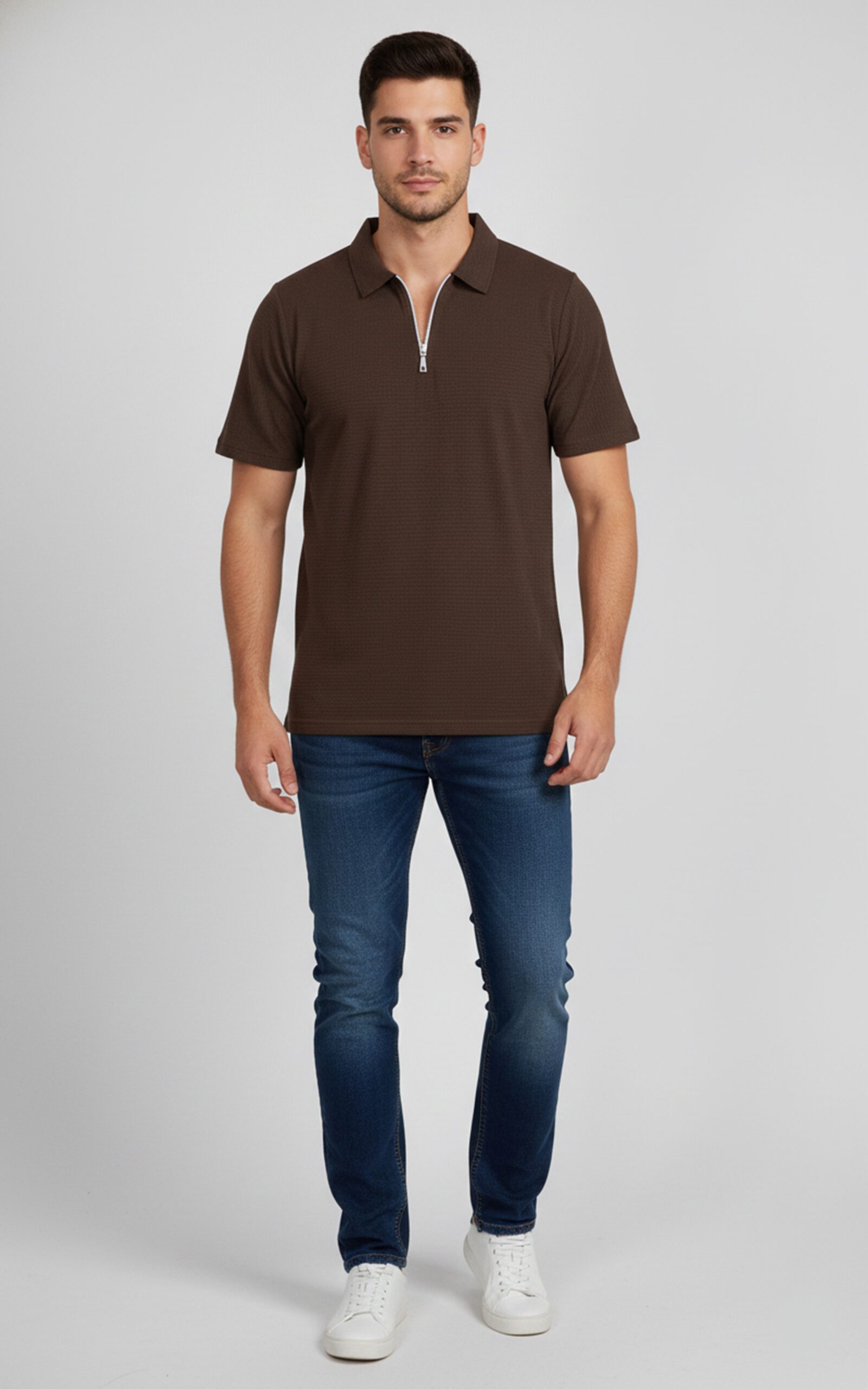 Be the first to review “Quarter-Zipper Polo T-Shirt Dark Brown” Cancel reply